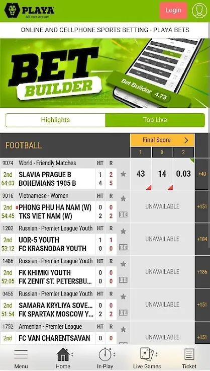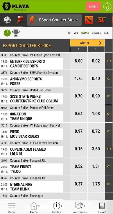 The lineup in the Playa Bets app for Android is average and includes just over 20 sports. In addition, betting on dog racing and horse racing is also available at the bookmaker. There are exotic sports such as kabaddi and floorball.